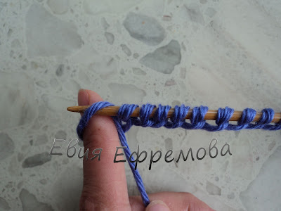 3 ряд : [ 1 лицевая, следующую петлю снимаем с накидом ( на этой петле будут уже 2 накида)] повторяем до конца ряда.