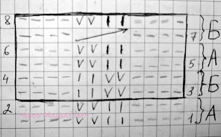 Uma grelha de nodos simples (Fig. 164, a). As extremidades dos filamentos de tampas em anexo para redes de tecelagem deve ser de 2 vezes mais longas do que a altura do produto na forma final. . O trabalho pode ser realizado e direita para a esquerda e da esquerda para a direita