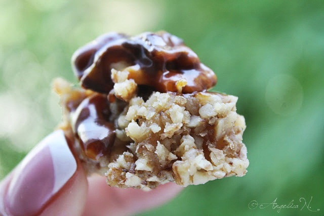 11.Cand sunt copti,ii scoatem din cuptor,ii lasam sa se tempereze si apoi turnam deasupra caramel,pe care il incalzim foarte putin in cuptorul cu microunde pentru a fi mai fluid si a se intinde mai bine.Cine doreste poate sa puna peste caramel si nuca intreaga sau macinata.