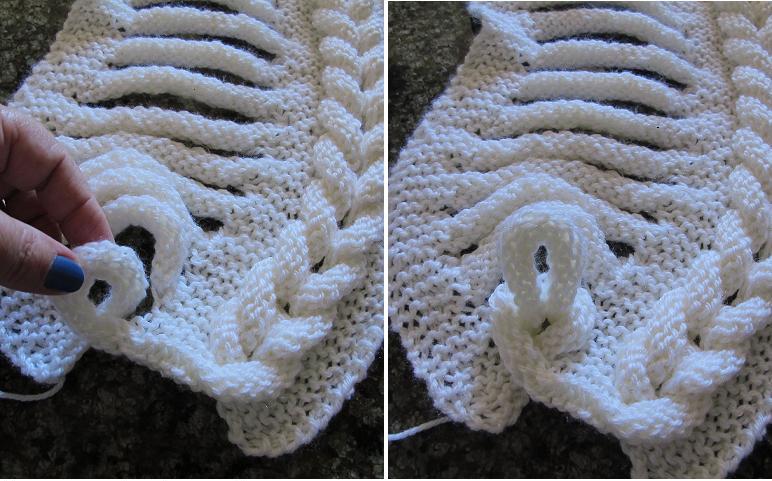 Провязать 6 лиц. п., 20 изн. п., 6 лиц. п., 20 изн. п., 26 лиц.
