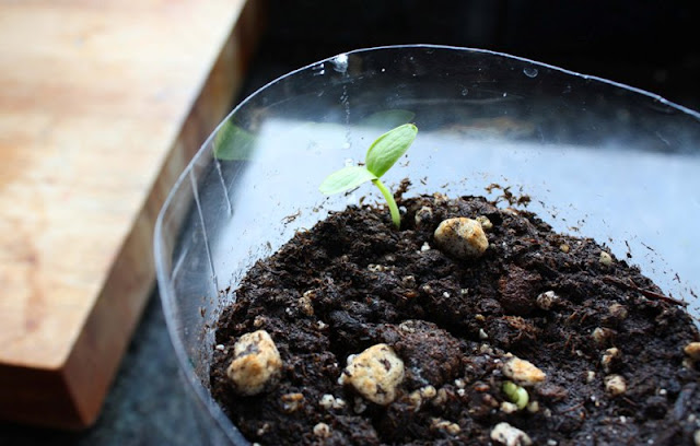 Еще один немало важный момент, бутылки я беру 2-х литровые, режу их пополам. Верхняя часть бутылки с крышкой особенно удобна, так как крышку можно свинтить и растение в дневные часы будет получать проветривание, а в ночные часы, крышку на место.