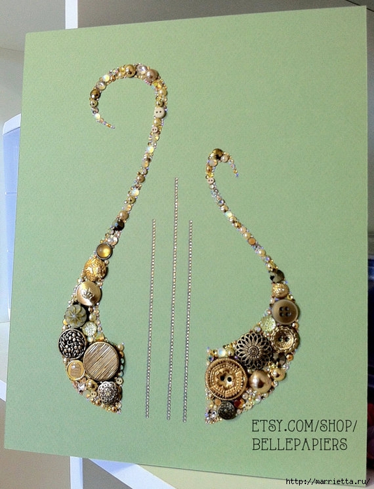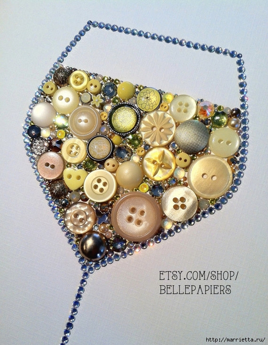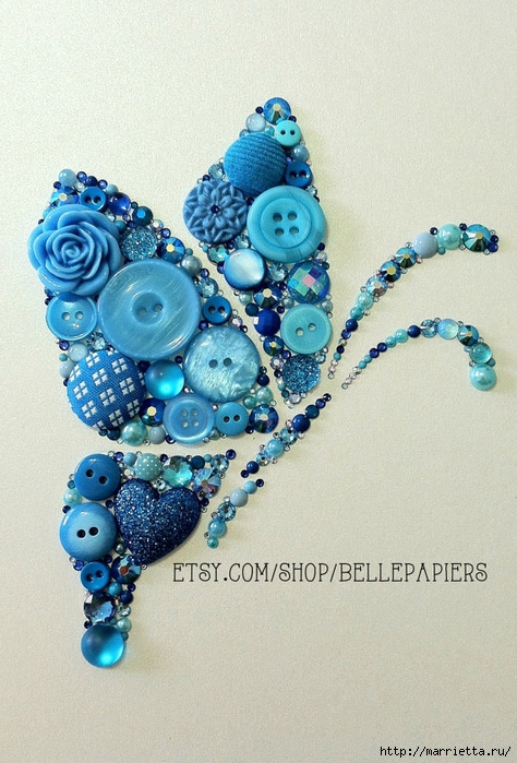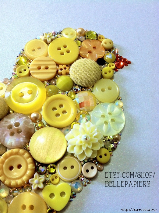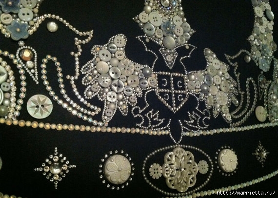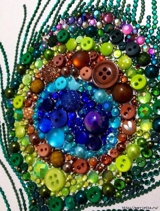 Оказывается из обычных пуговиц, которых у каждой рукодельницы скапливается со временем великое множество, можно делать невероятно красивые предметы декора. Тут использованы не только пуговицы, но и стразы, пайетки, бисер, в общем все то, остатки чего вроде как и применить некуда, поскольку их мало, и выбросить жалко - а вдруг пригодятся! Пригодятся, конечно, для создания таких очаровательных панно!