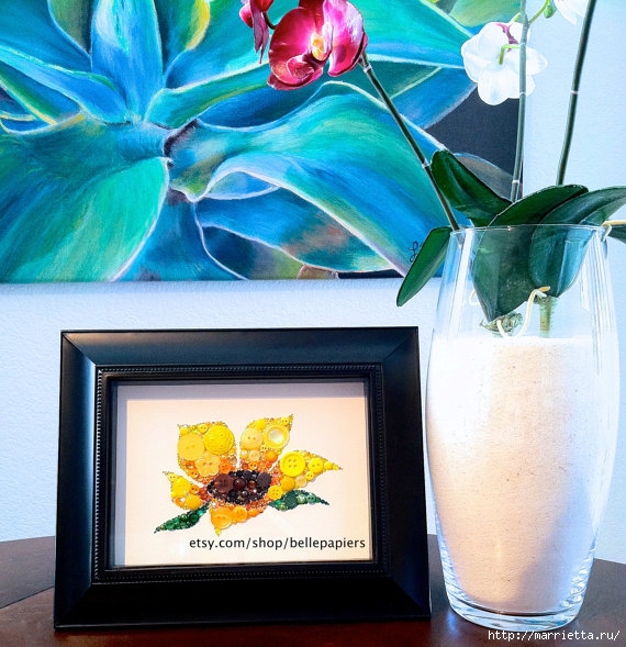 Подобные работы из пуговиц можно создавать даже с детьми.