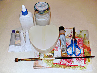 заготовка шкатулки, салфетка для декупажа, клей ПВА, акриловый лак, акриловые краски, морилка для дерева.