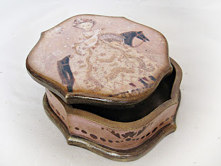 Декор шкатулки выполнен в технике декупаж, за основу взята заготовка из бересты. Мотив на крышку подбираем в соответствии с задуманной тематикой, в данном случае использовалась салфетка для декупажа, ее приклеиваем клеем ПВА,аккуратными мазками, от центра к краям.После полного высыхания клея, закрепляем результат акриловым лаком, он сохнет быстро и абсолютно не токсичен. Все остальное чистое дерево покрываем морилкой для дерева.Тонируем грани на крышке акриловой краской коричневого цвета или битумным лаком для более полного ощущения старины. При помощи грубой кисти делаем набрызги белого и коричневого цвета на всю поверхность шкатулки, и покрываем финишным слоем лака. Без особых усилий и навыков у нас готова милая шкатулка с легким налетом старины!