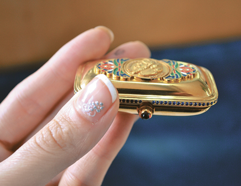 А вот некоторым клиентам центра, напротив, это в голову пришло. Многие в частном порядке заказывают своим возлюбленным необыкновенной красоты эксклюзивные изделия. Один «вип» недавно попросил себе из злата-серебра рамку для фото, на котором он вместе с супругой. Вообще частные заказы — это одно из самых интересных. Как-то в центре сделали большое килограммовое пасхальное яйцо из мамонтовой кости, украшенное сотнями бриллиантов и самоцветов. На яйце написали: «Да святится имя Твое». Кому предназначалось это изделие, до сих пор неизвестно. Поговаривают, что ну о-о-очень влиятельному человеку.