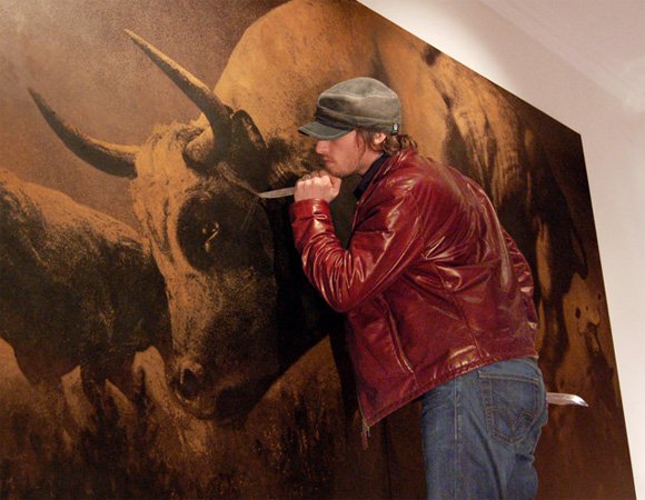 Свои картины Mark Evans вырезает и выскабливает на шкурах животных.