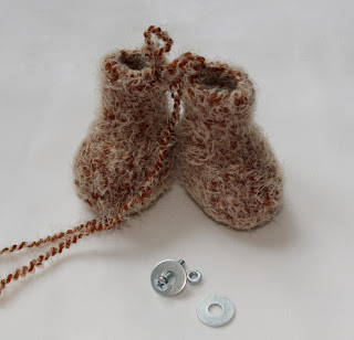 4 ряд: (ст.б/н, полуст. с/н) в первую петлю, 3 ст.с/н в след. петлю, (ст.б/н, полуст. с/н) в последнюю петлю. Закрепить нить. Пришить этот язычок к ботинку.