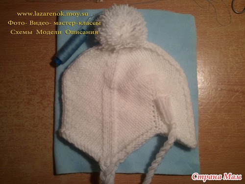 7. На этом вязание планки шапочки закончено, далее будем вязать основную часть шапочки - ряды с убавками и прибавками, чтобы сформировать ушки шапочки и "козырек". См. схемку