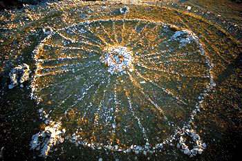Солнце и крест - звезда в круге. Наскальный рисунок. Пещера Чумаш. Калифорния.