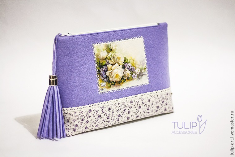 Шьем милую весеннюю косметичку из фетра и ткани.
