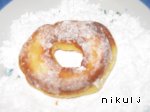 Как тесто будет готово, делаем из него тонкую колбаску и нарезаем кубиками в 1 см. Рукой придаем каждому кубику форму круга. Раскатываем каждый кусочек скалкой. Делаем теперь стаканом наружный край пончика, а крышечкой делаем внутренний край пончика. Теперь обжариваем их на растительном масле. Как пончики будут готовы, можно посыпать сахарной пудрой. Приятного Вам аппетита!