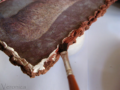 После высыхания отрезаем лишнее (сначала проводим ножом параллельно лицевой поверхности, потом немного сбоку). Красим акрилом (смешиваем коричневый, красный и черный цвета).