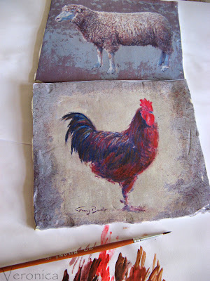 Печатаем картинки на глянцевой фотобумаге (180-250 г/м2). Сбрызгиваем лаком для волос сильной фиксации и покрываем акриловым лаком (у меня Eskaro для саун). Первый слой кладем осторожно. Для лакирования использую валик и кладу 6-8 слоев. Если лакировать кисточкой, то можно ограничиться 3-4 слоями.