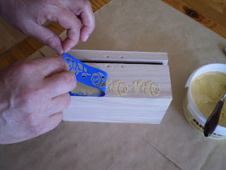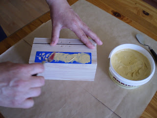 Наносим на выбранное место для трафарета акриловую шпаклёвку по древесине.