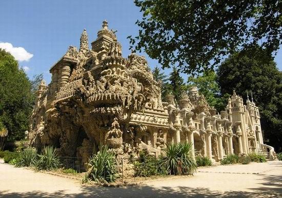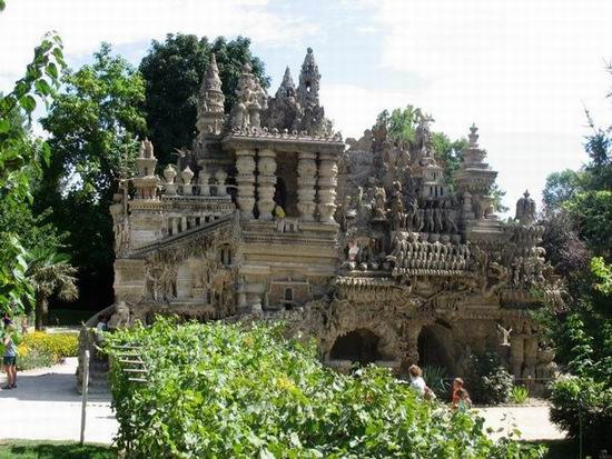 Двадцать лет возил он камни, а местные жители смотрели на него, сокрушались, но не трогали. Сумасшедший, что с него взять !А потом он ушел на пенсию и начал возведение своего Идеального Замка. Сделанный из камня, цемента и проволоки, Идеальный Замок представляет собой фантастическую смесь всевозможных стилей. Здесь заметны черты архитектуры Ближнего Востока, Китая, Алжира, а также влияние Антонио Гауди.