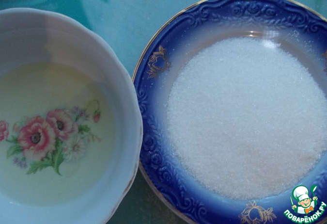 Отдельно в мисочку отправляем оставшийся белок от теста и отдельно сахар, около стакана.