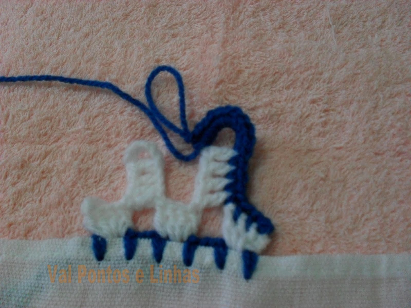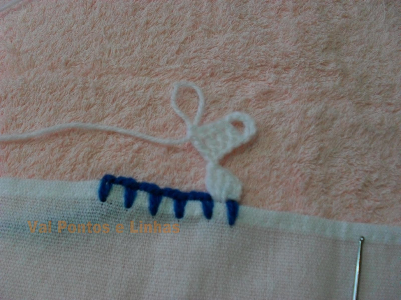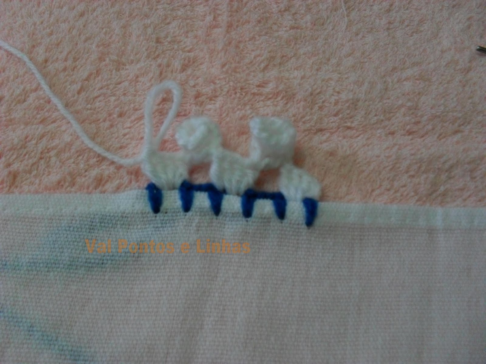 Нитью другого цвета, сделайте 4 столбика, в 1-е место.
