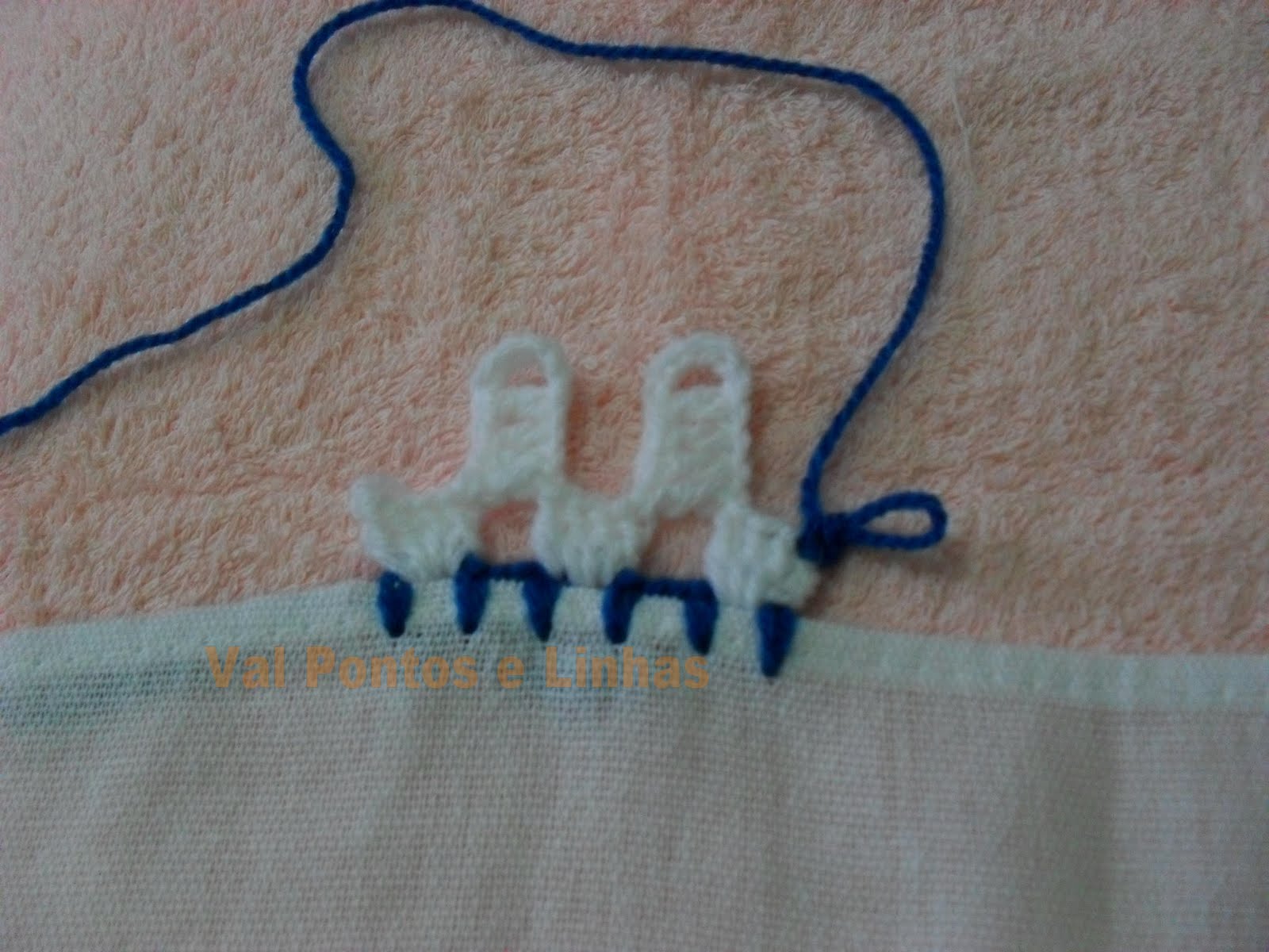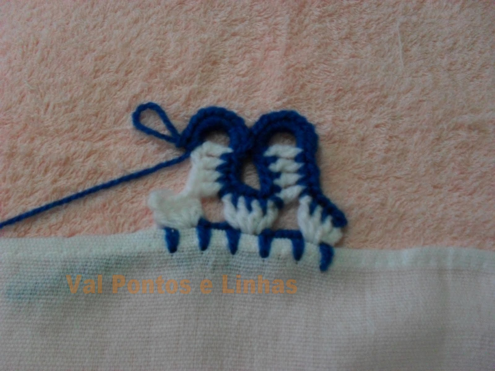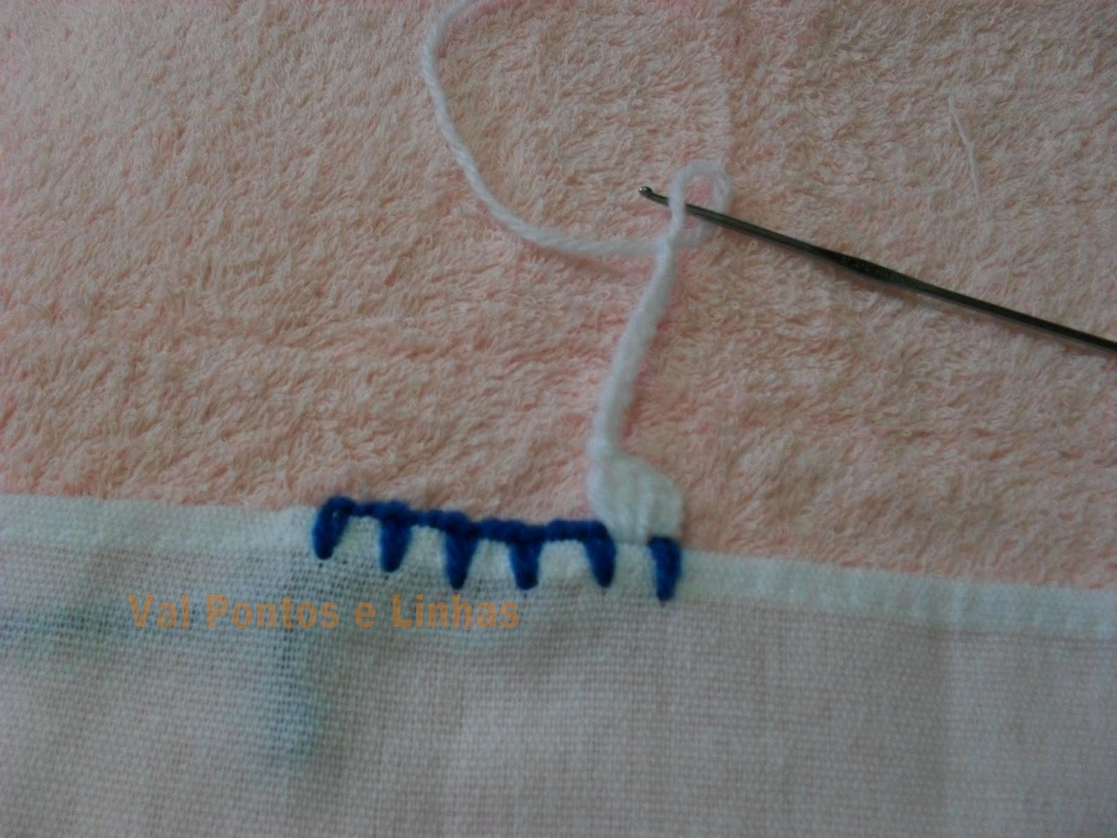 Обвязываем край ткани крючком, стараясь оставить нечетное число воздушных петель в виде пробелов