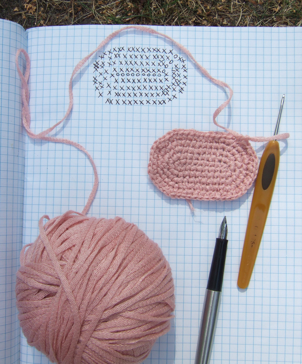 2. Ряды из столбиков без накида, но делаю прибавку по обеим сторонам (указала галочкой)