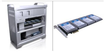 Состоит новинка из блоков по 128ГБ на твердотельных дисках; для подключения используется только один слот PCIe X4. Создатели обещают, что Mac Array будет читать со скоростью 760МБ/сек, а скорость записи у него составит 524МБ/сек. Если удвоить устройства, то можно получить 1408МБ/сек и 1027МБ/сек, соответственно. Кстати, одновременно может работать до трех таких систем. Правда, как и вся серьезная периферия к Apple, Mac Array стоит достаточно дорого $1499, хотя с другой стороны эта цифра сравнима с цифрой, которая будет выставлена за ремонт компьютеров компании Apple.