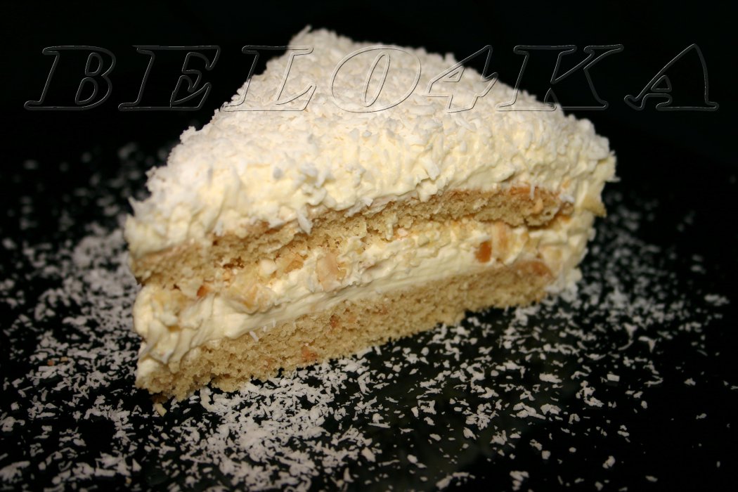 Торт "Зимняя  сказка"  ("Рафаэлло") Крахмал  картофельный Разъемную форму (диаметром 26см) выстилаем пекарской бумагой.