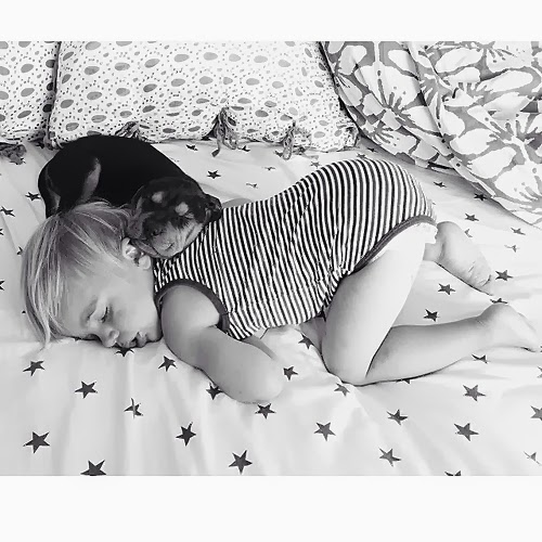 Красивая щенок и Тео ежедневные сон друг с другом