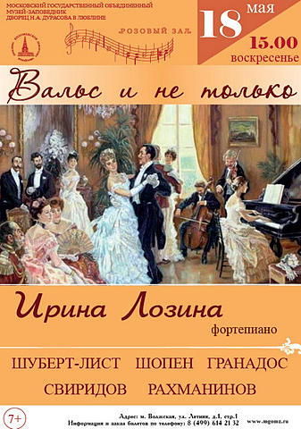 Вдалеке от активных зазываний и рекламы 18 мая в Розовом зале Дворца Дурасова (Усадьба Люблино) состоялся концерт «Вальс и не только». Гостей и приглашенных было немного, но все кто пришел не пожалел!