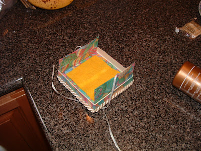Т. к. боковинки у коробки получились разноцветные, а сквозь плетение основа просвечивает, я перед плетением их заклеивала обычной бумагой для принтера. Забегая вперед, хочу сказать, что бумагу еще надо было покрасить в тот цвет, которым красила коробочку потому, что как я не старалась хорошо прокрашивать все равно белое просвечивает.