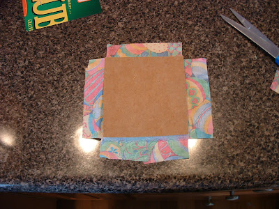 Возьмите большой кусок картона, смажте его клеем и приклейте ткань, оставляя "крылья" с обоих сторон как показано на фотографии.