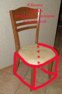 Возмите дешевую ткань для пошива модели. Скроите прямо на стуле 3 детали: СИДУШКА, СПИНКА и ЮБОЧКА (так я их обозвала, за правильность терминов не ручаюсь)