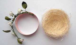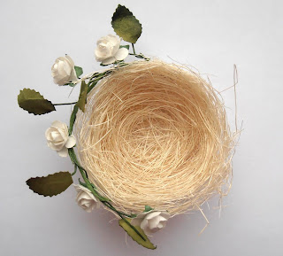 Раздвигая зубочисткой или булавкой средний и внутренний слои, мы можем вложить предварительно смазанные клеем кончики цветов, листьев и других украшений, не затрачивая особых усилий на сложную декорацию. Таким образом, можно поселить нашу птичку в настоящий "кустарник", а приклеив обычную полоску бумаги как ручку, имитировать корзинку!