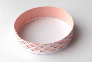 Для одного из МК я придумала "волшебное кольцо", которое позволит очень быстро декорировать подставки подобного типа. Суть конструкции в том, что к нашей подставке из двух полосок бумаги мы добавляем третье внутреннее кольцо. При этом важно вклеить это кольцо только в одном-двух местах, чтобы оставался "просвет".
