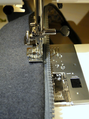 - втачиваем молнию. Расстегиваем молнию, укладываем на лицевую сторону прямоугольника (42*7 см), закрываем такой же деталью подклада, прокладываем строчку. То же самое проделываем с другой стороной молнии. Следите чтобы края деталей были на одном уровне и припуски были одинаковы!