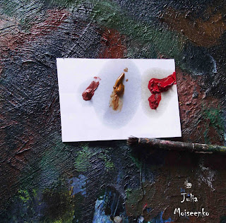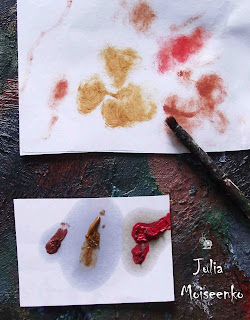 вот прошло, примерно, 2 часа и видно как масло впиталось в бумагу и расплылось, сама краска немного подсохла