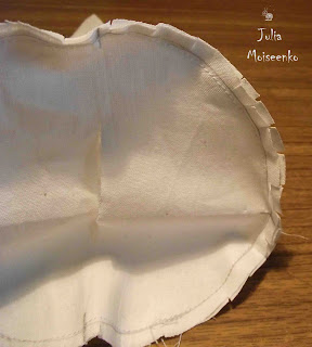 Прошиваем ручки полностью, тело-конус - один шов, и клинья головы по одной стороне, как я обвела на втором рисунке.