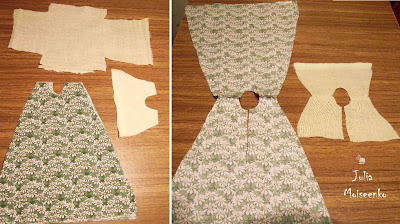 здесь я уже перевела выкройки на ткань, которую сложила пополам