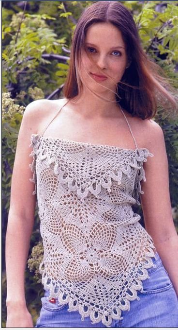 Топ-туника связанная крючком с вырезом на спине. |
