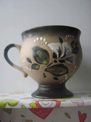 Это тоже из Горловской, но не совсем студенческой жизни. Чашечки из белой глины, сплошной хендмейд. Двух одинаковых мне так и не удалось найти.