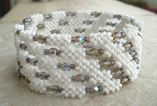 Такой браслет выглядит довольно сложно, но плетется быстро и легко. Для работы вам понадобятся крупные бусины диаметром 4-5 мм. и бисер размера 11/0.
