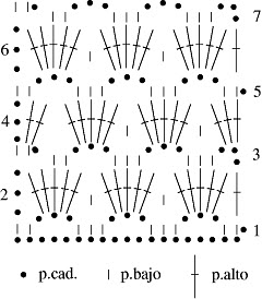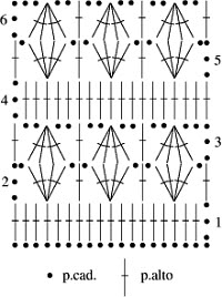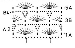 Кружево вывязывают по схеме, на которой указывается последовательность вязания и способы соединения отдельных его мотивов и фрагментов.