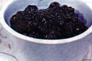 Чернику мою. 1/5 часть ягод тщательно разминаю и смешиваю с сахаром.