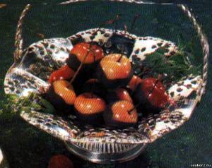 В кастрюле с двойным дном растапливаю шоколад. Обмакиваю черешню наполовину в шоколад. Кладу на пергаментную бумагу до тех пор, пока шоколад не перестанет стекать. Обмакиваю еще раз в шоколад. Ставлю в холодильник, чтобы шоколад застыл.
