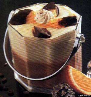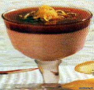 Вливаю шоколадную смесь в форму для суфле. Сверху заливаю апельсиновой смесью. Ставлю в холодильник на 1 час или до тех пор, пока суфле не застынет.