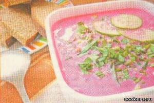3. Подготовленные продукты ложим в квас, солим и всыпаем сахар. Оставляем на час настояться. При подаче можно заправить сметаной и посыпать мелко нарезанной зеленью.