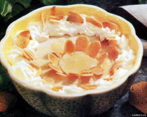 Осторожно смешиваю ром с оставшимися взбитыми сливками. Украшаю мусс. Посыпаю жареным миндалем.