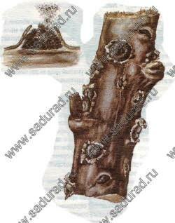 Симптомы болезни: кора веток смородины икрыжовника теряет упругость и трескается. Ветки и побеги, пораженные этим грибным заболеванием, усыхают. С развитием болезни в трещинках засохших ветвей появляются мелкие округлые бугорки - стромы гриба, где и вызревают споры, которыми он распространяется. |