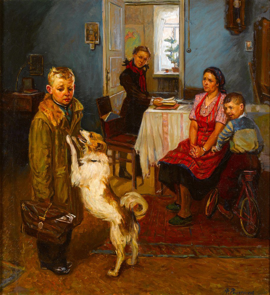 Яйцо отварить вкрутую. Промытый картофель отварить, охладить и очистить. Холодную жареную телятину, картофель, огурцы, очищенные яблоки и яйцо нарезать мелкими кубиками. Добавить зеленый горошек, майонез, соль, сахар, уксус, горчицу и осторожно перемешать.