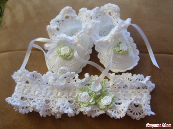 Платье на крещение, пинетки и повязка |