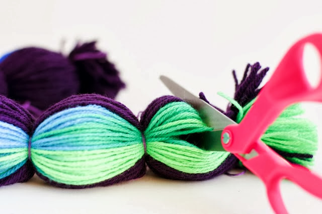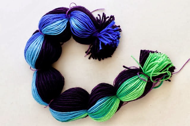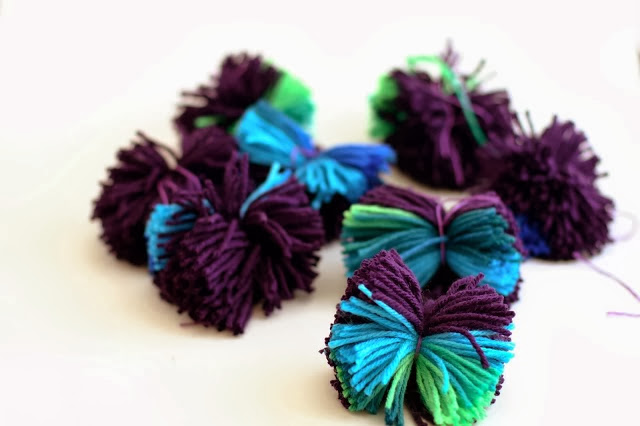 Очень классный способ,как за один раз сделать много помпонов.Такая методика пригодится особенно тем,кто любит вязать коврики или еще какие то вязалочки,где нужно сразу много помпончиков.Метод простой и легкий.Главное это нитки и стол ,на который нужно наматывать их для нужной величины помпонов.